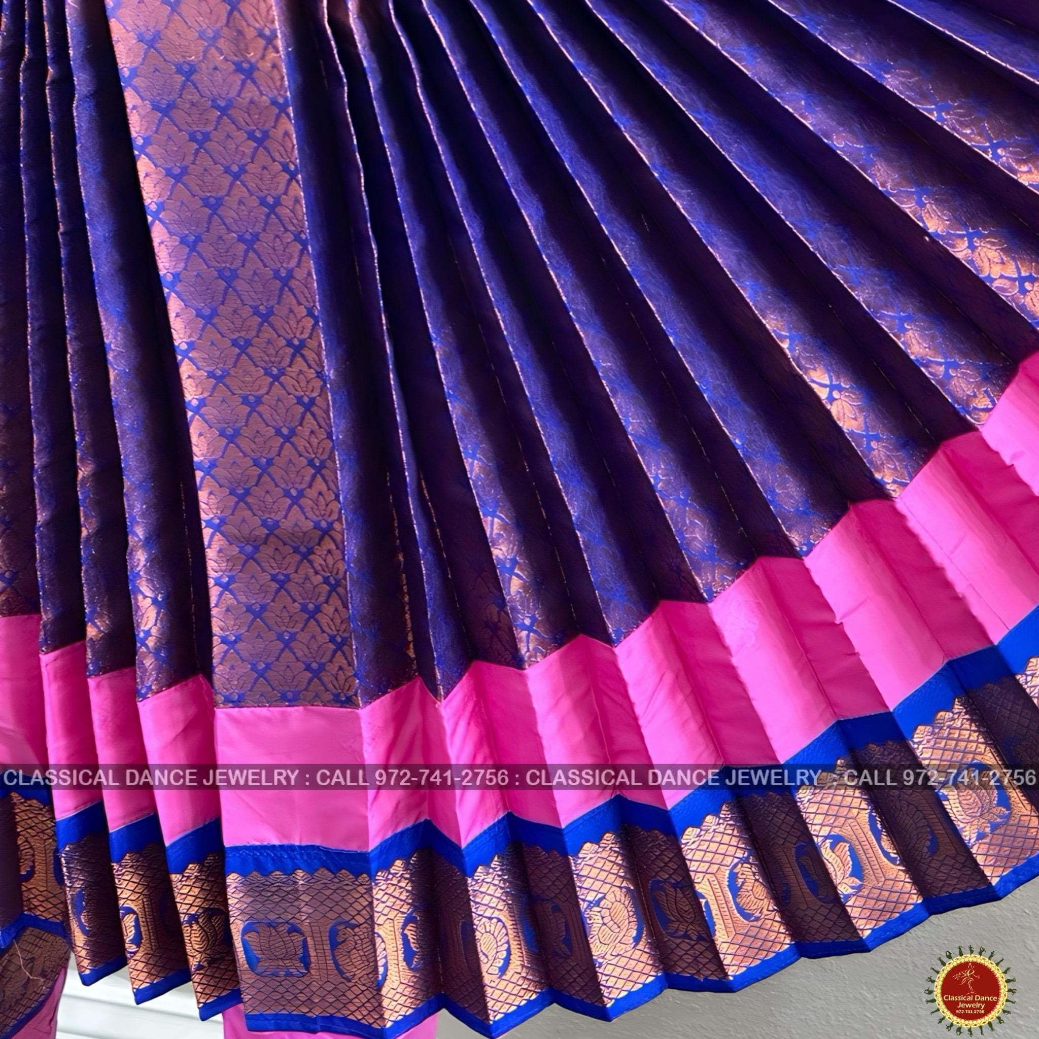 LAVENDER LILAC BLUE 36 inches Pant Length Bharatanatyam Copper Zari Dance Costume | Art silk Dharmavaram Kanchi | Classical Dance Jewelry