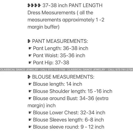 ☛ Blouse around Bust: 34-36 (extra margin) inches