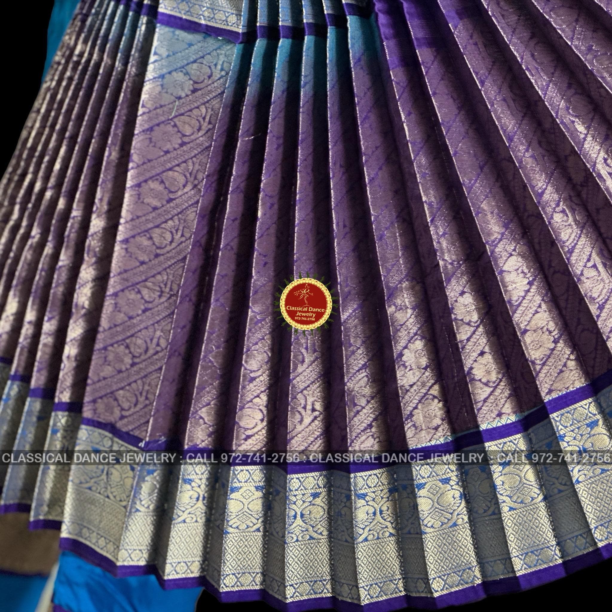 COPPER SULPHATE BLUE 38 Inch Pant Length Bharatanatyam Dance Costume Gold Zari | Art Silk Dharmavaram Kanchi | Classical Dance Jewelry