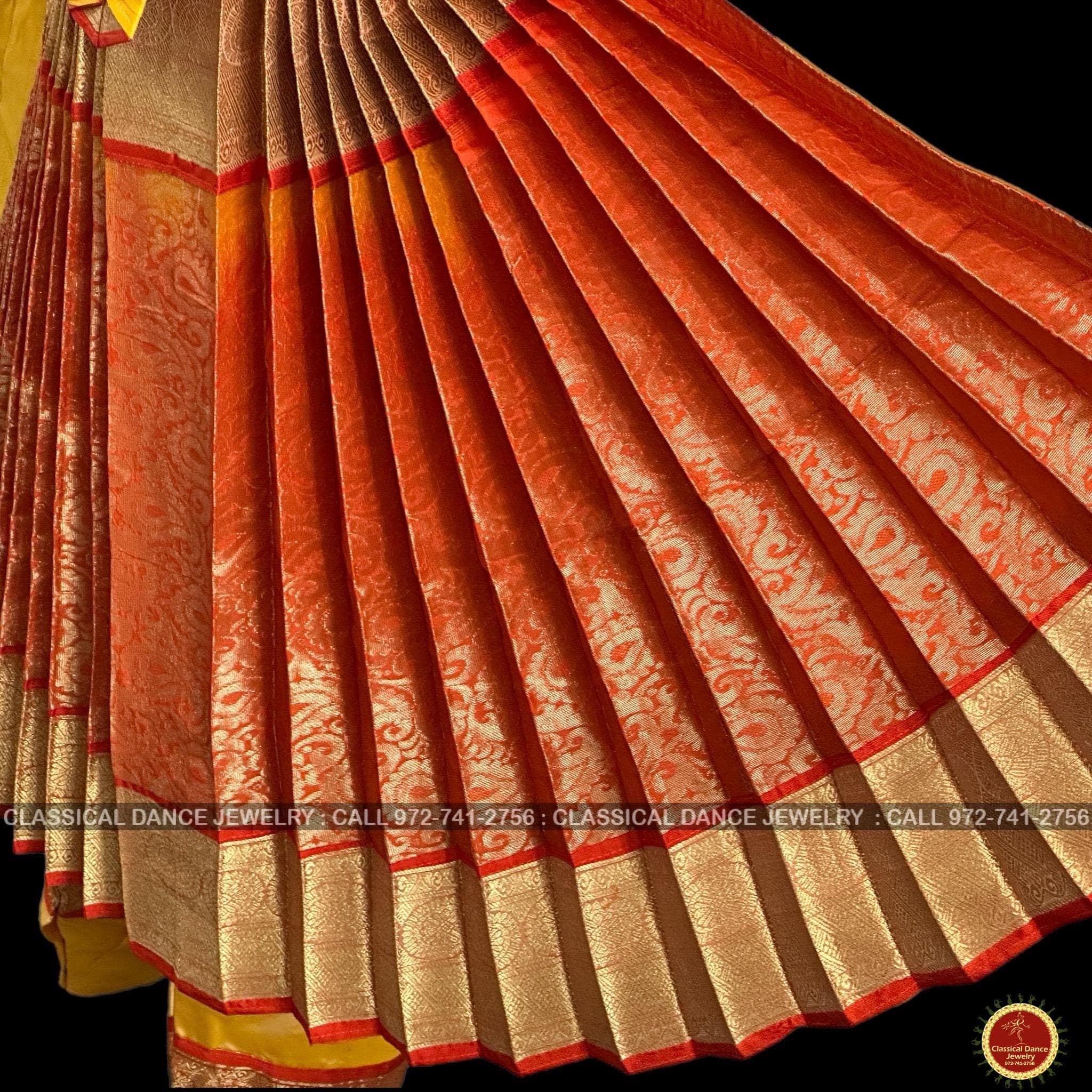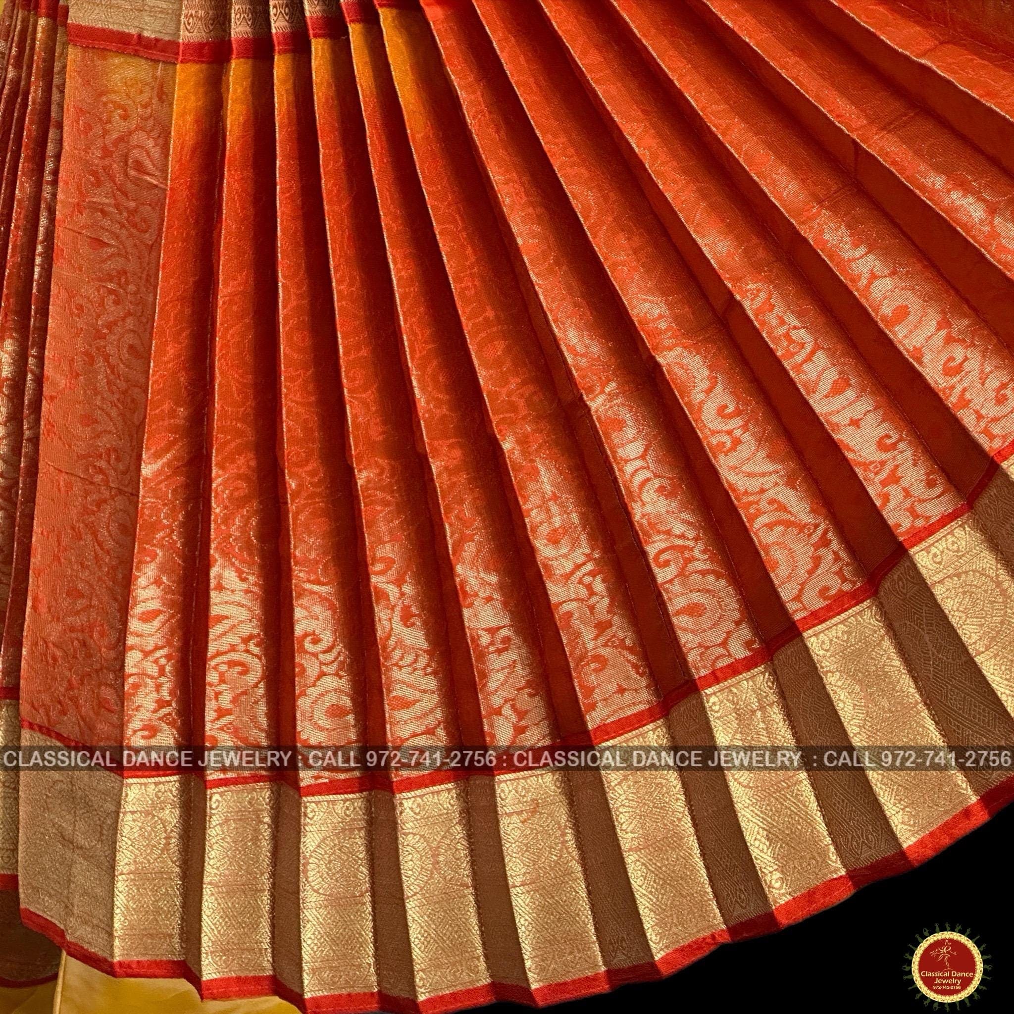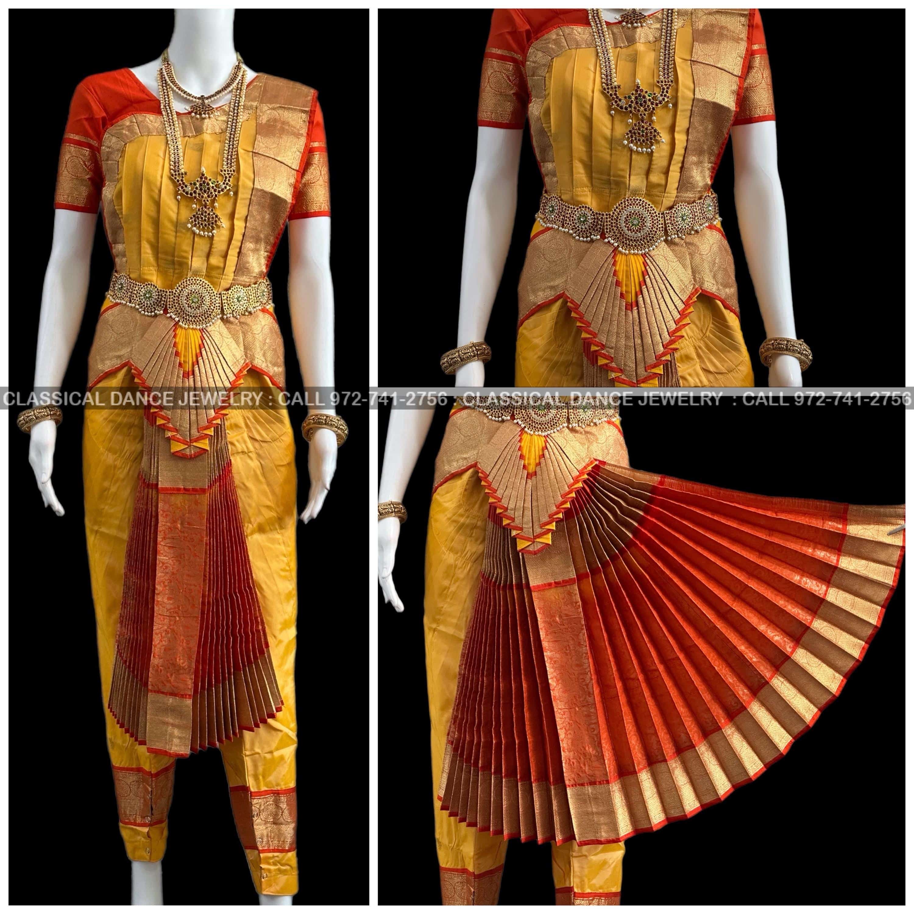 GOLDEN Butter YELLOW ORANGE 40 Inch Pant Length Bharatanatyam Dance Costume Gold Zari | Artsilk Dharmavaram Kanchi | Classical Dance Jewelry