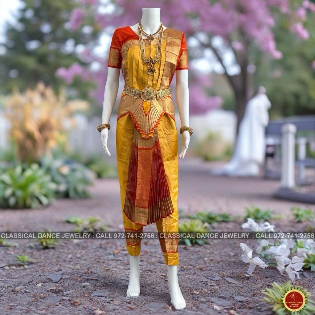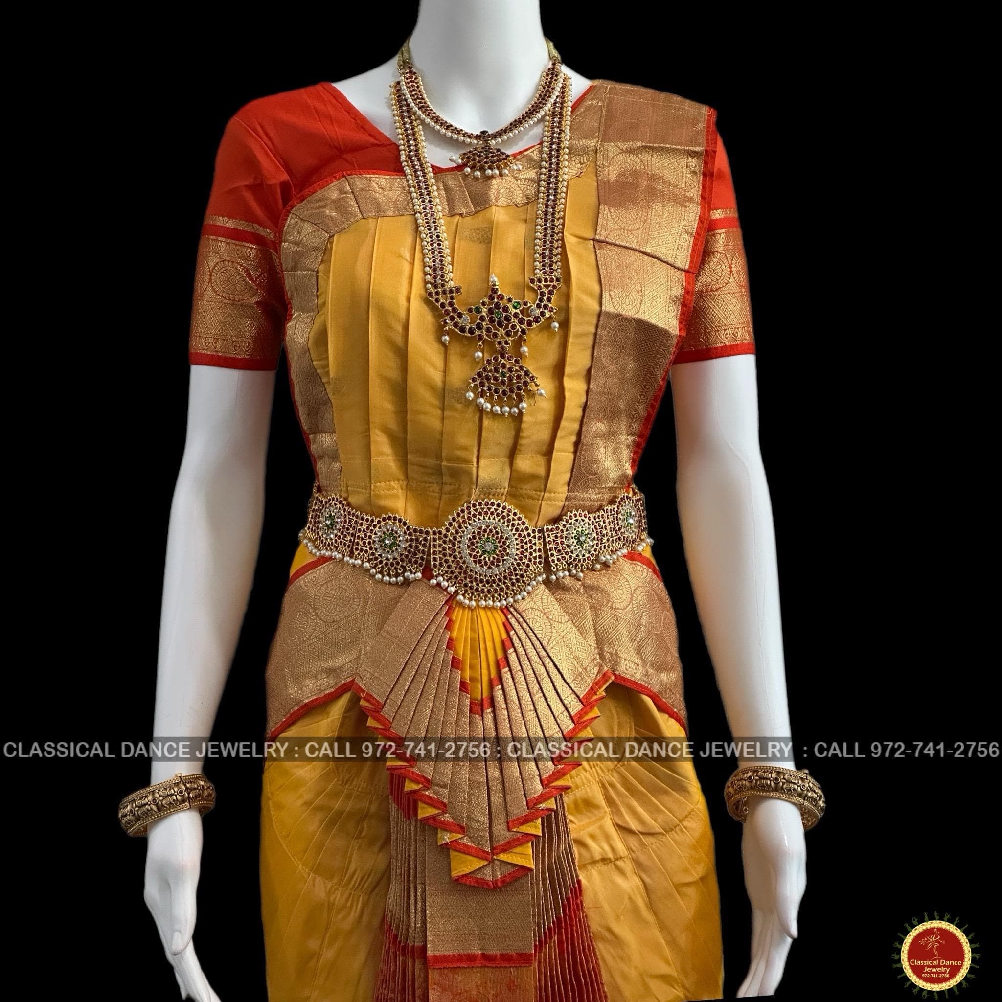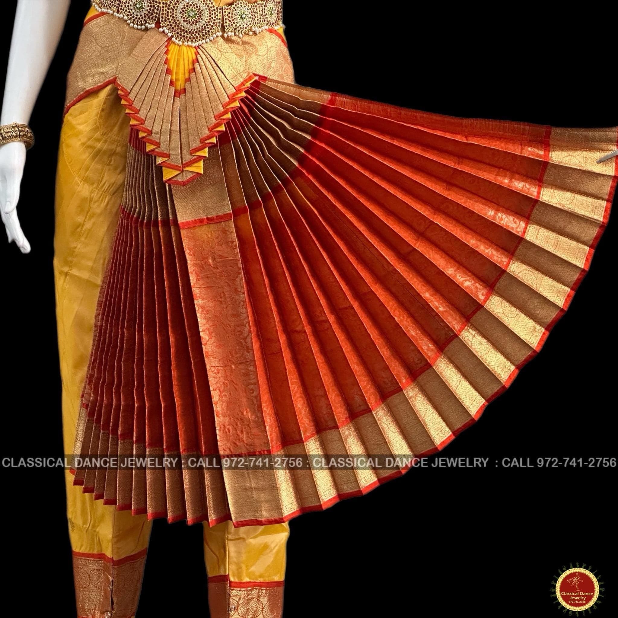 GOLDEN Butter YELLOW ORANGE 40 Inch Pant Length Bharatanatyam Dance Costume Gold Zari | Artsilk Dharmavaram Kanchi | Classical Dance Jewelry