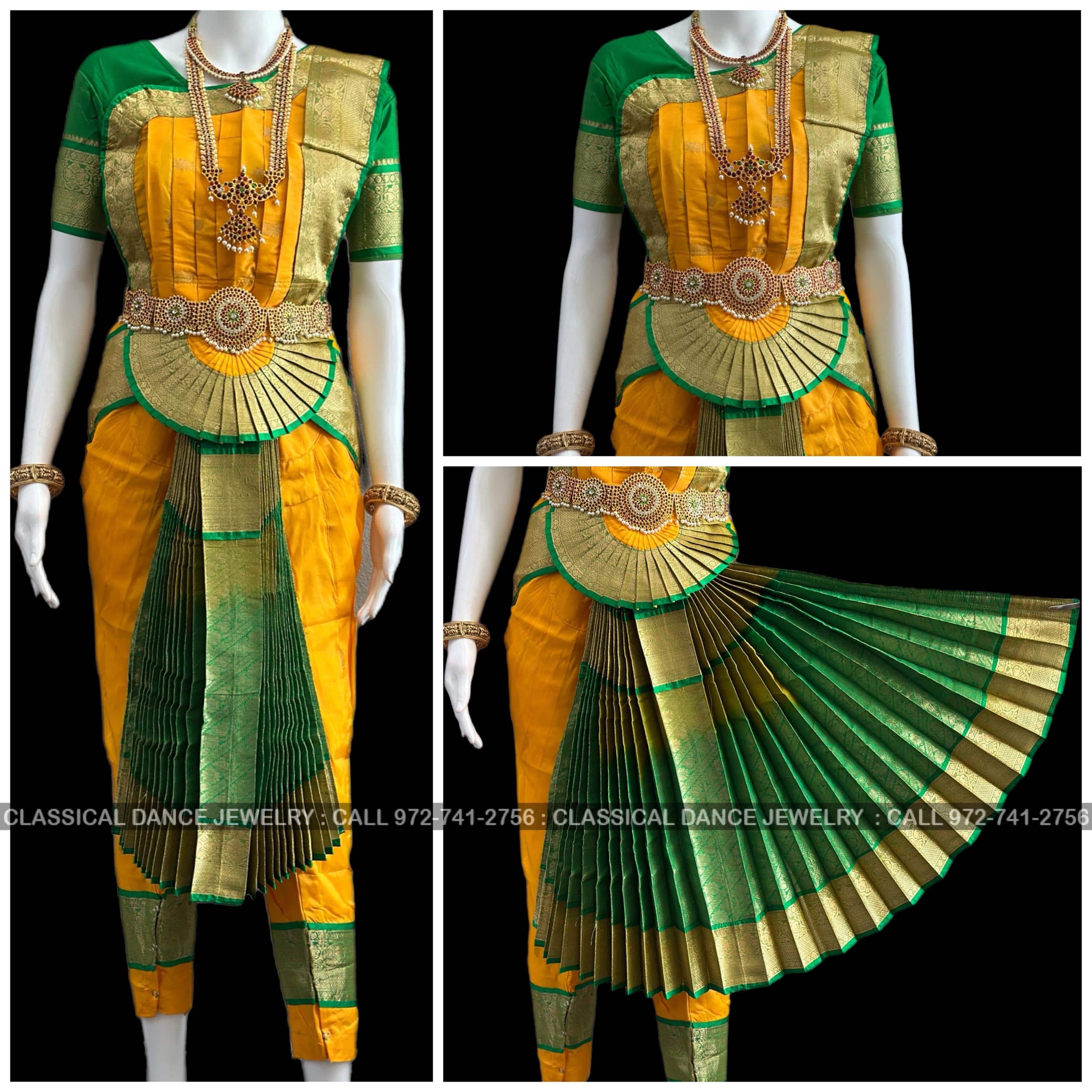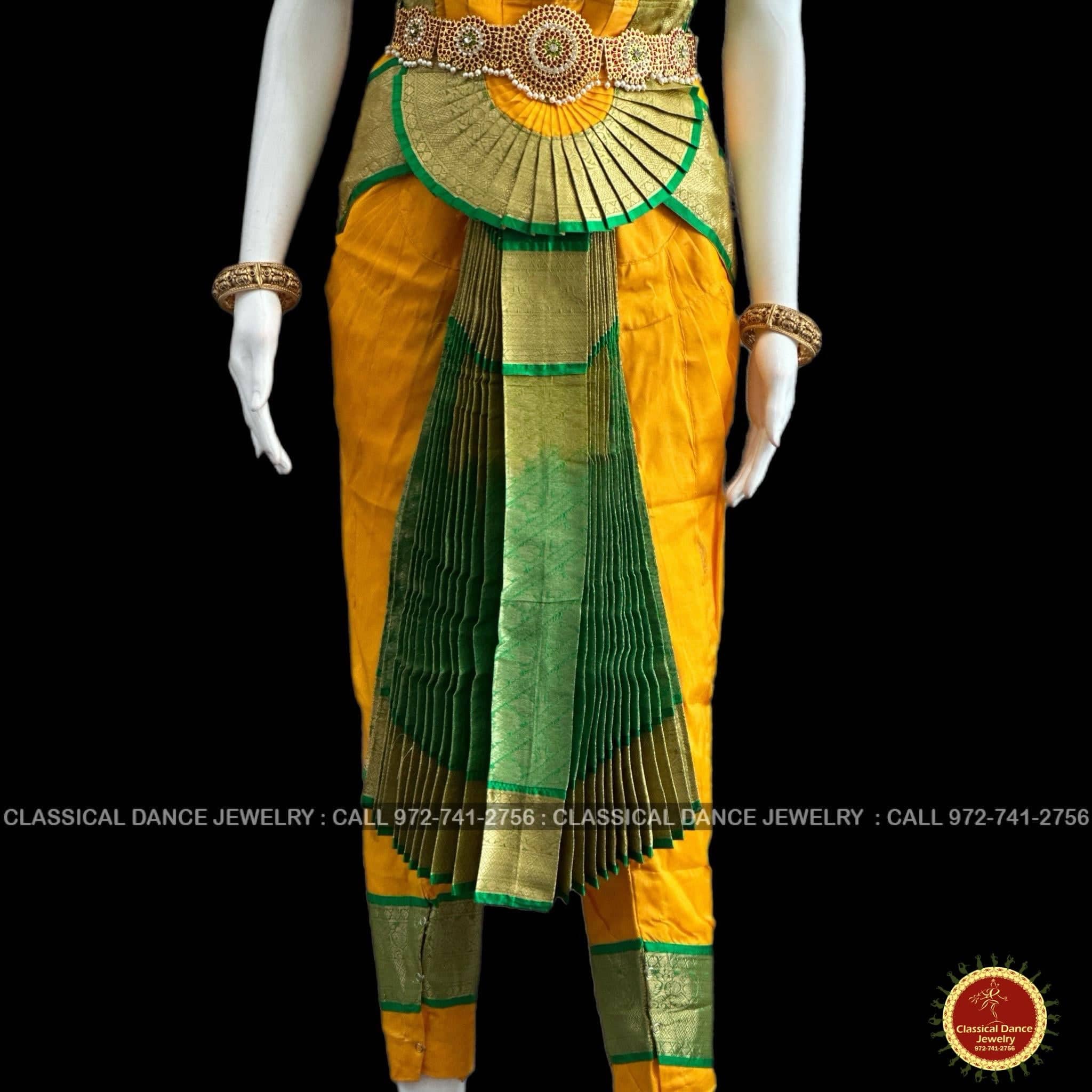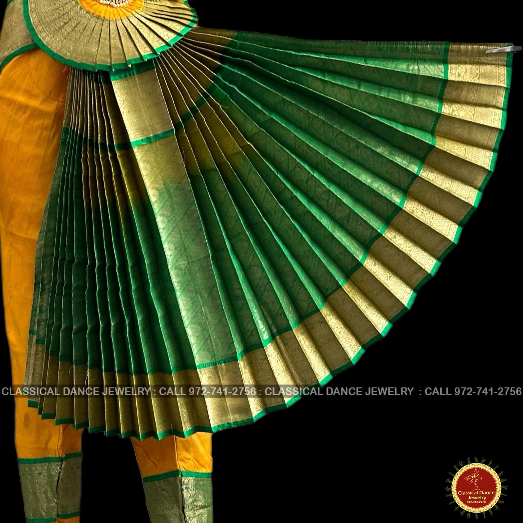 MANGO YELLOW GREEN 38 Inch Pant Length Bharatanatyam Dance Costume | Gold Zari | Art Silk Dharmavaram Kanchi | Classical Dance Jewelry