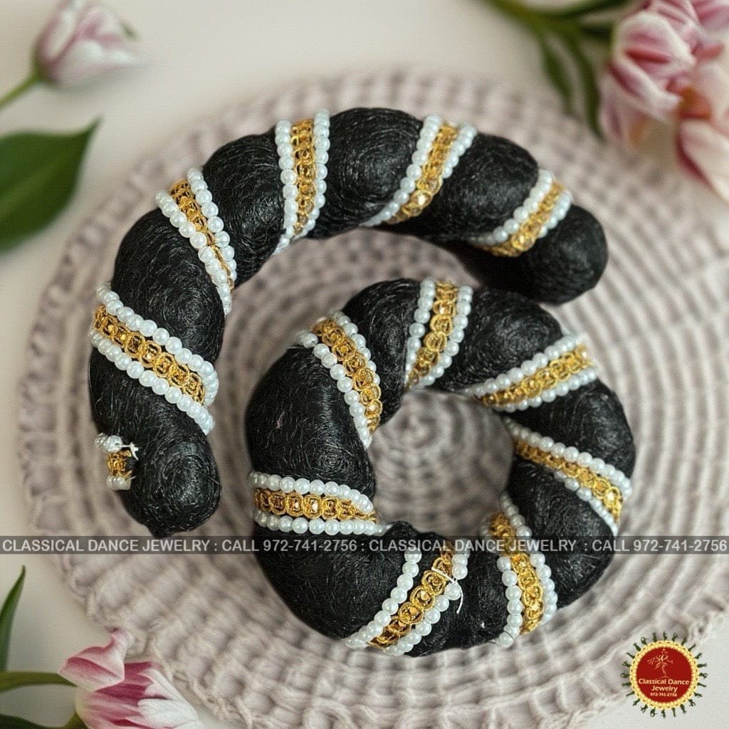 Pearls Hair Donut Ring Set | Rakodi Indian Jewelry | Bharatanatyam Kuchipudi Dance Weddings and Events | Classical Dance Jewelry