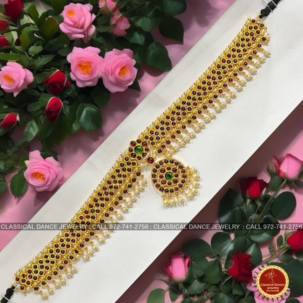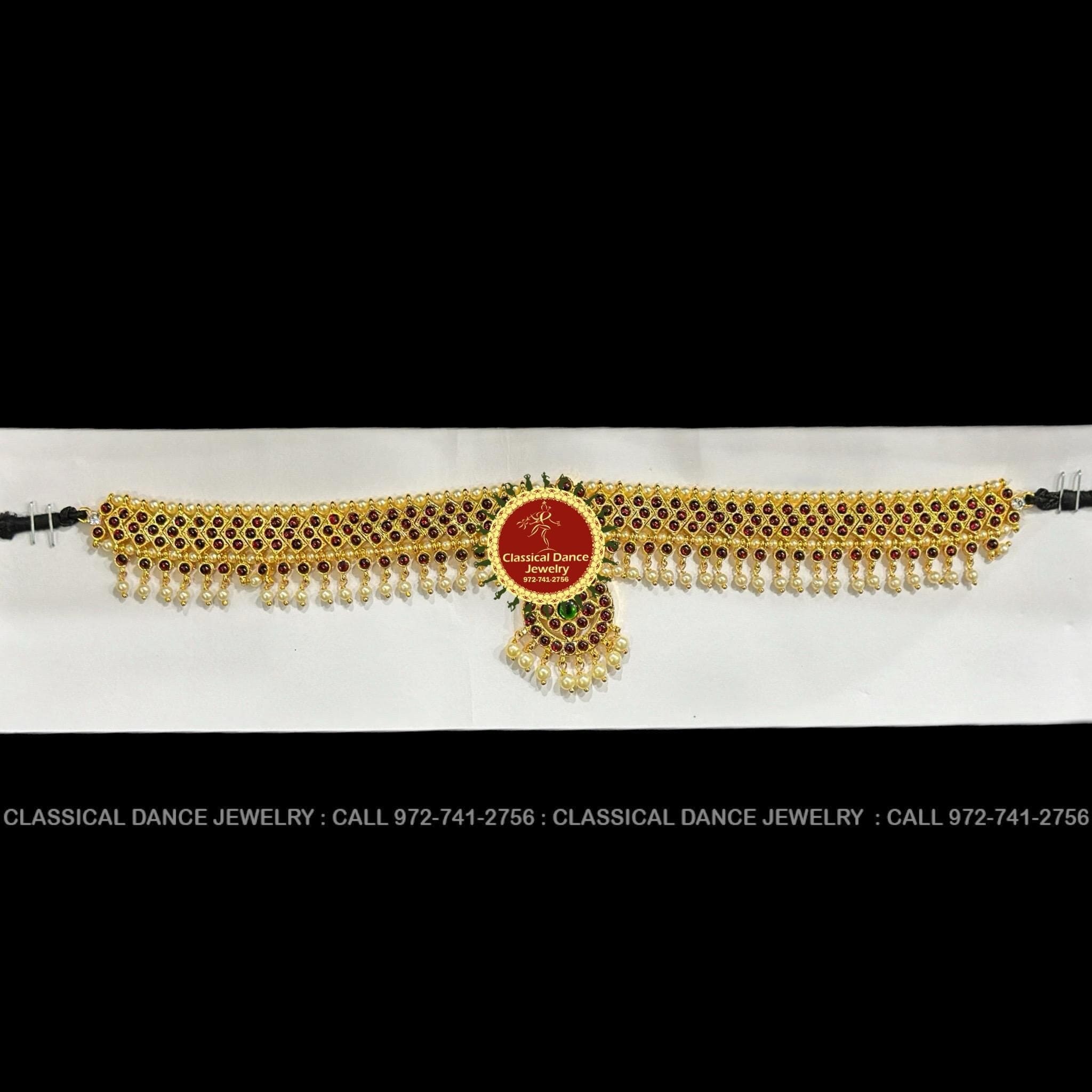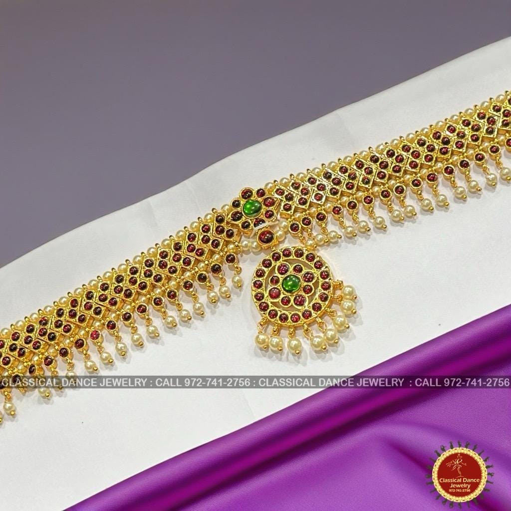 ❥ Gorgeous Temple Kemp Indian Jewelry with Kempu, Stones, Hip chain, Waist Belt, Oddiyanam Kamabandh for weddings, Bharatnatyam, and Kuchipudi Dance Performances.