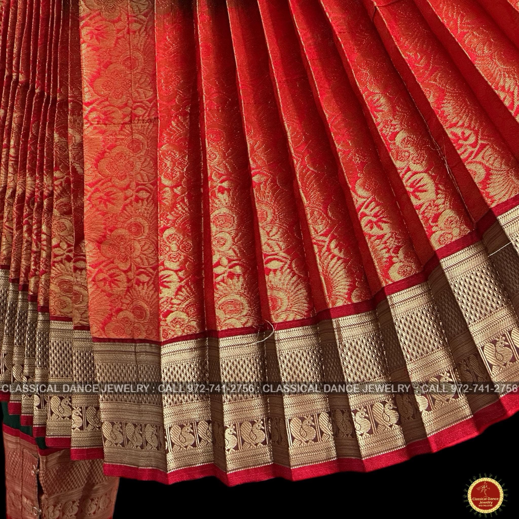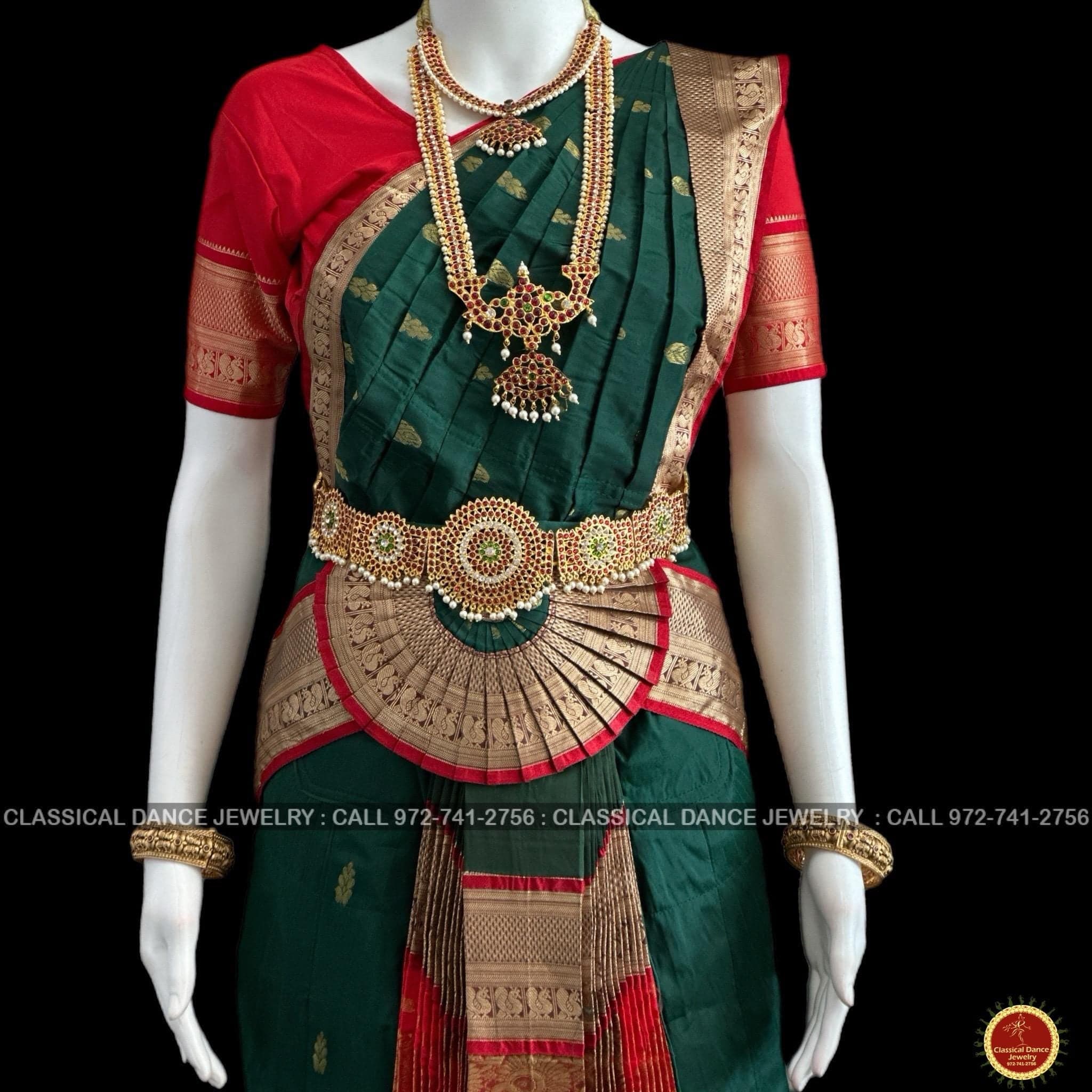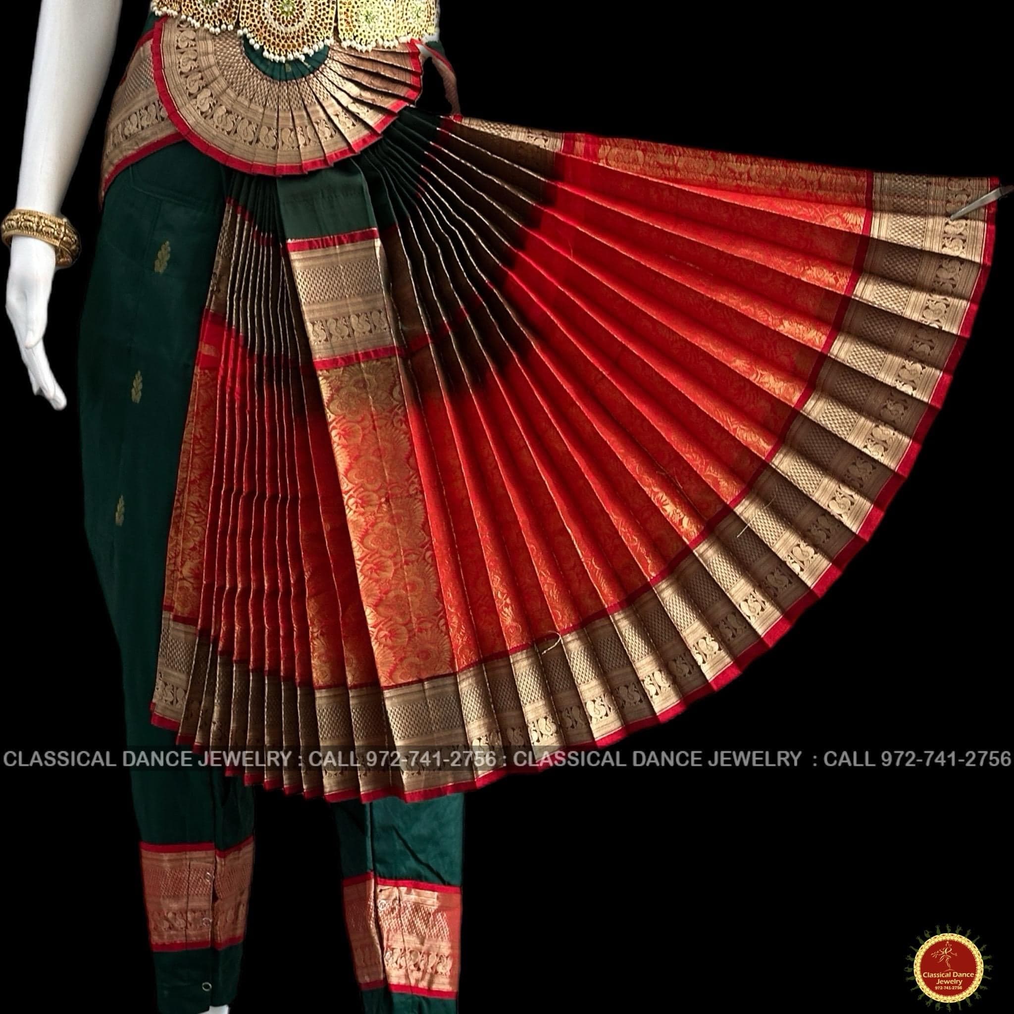 Dark GREEN RED VINTAGE 36 inch Pant Length Bharatanatyam Gold Zari Dance Costume | Art silk Dharmavaram Kanchi | Classical Dance Jewelry