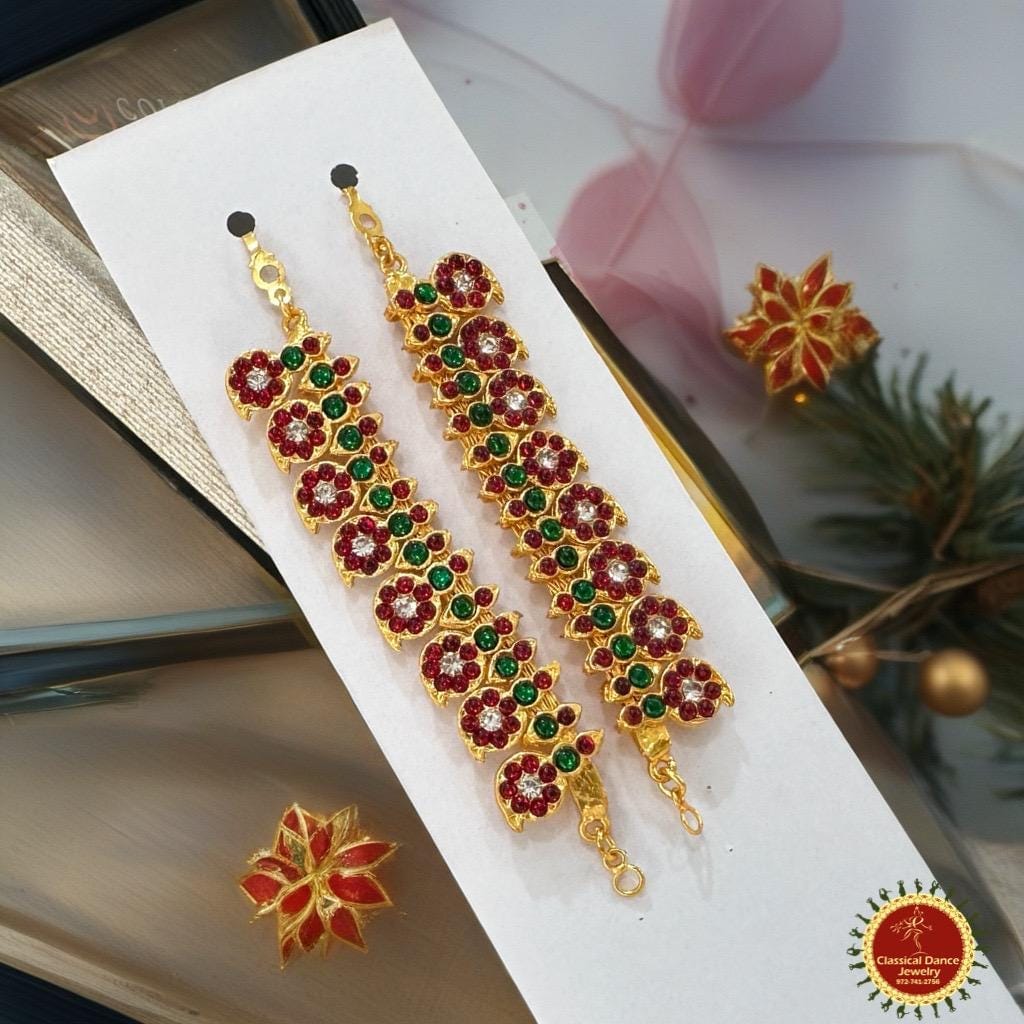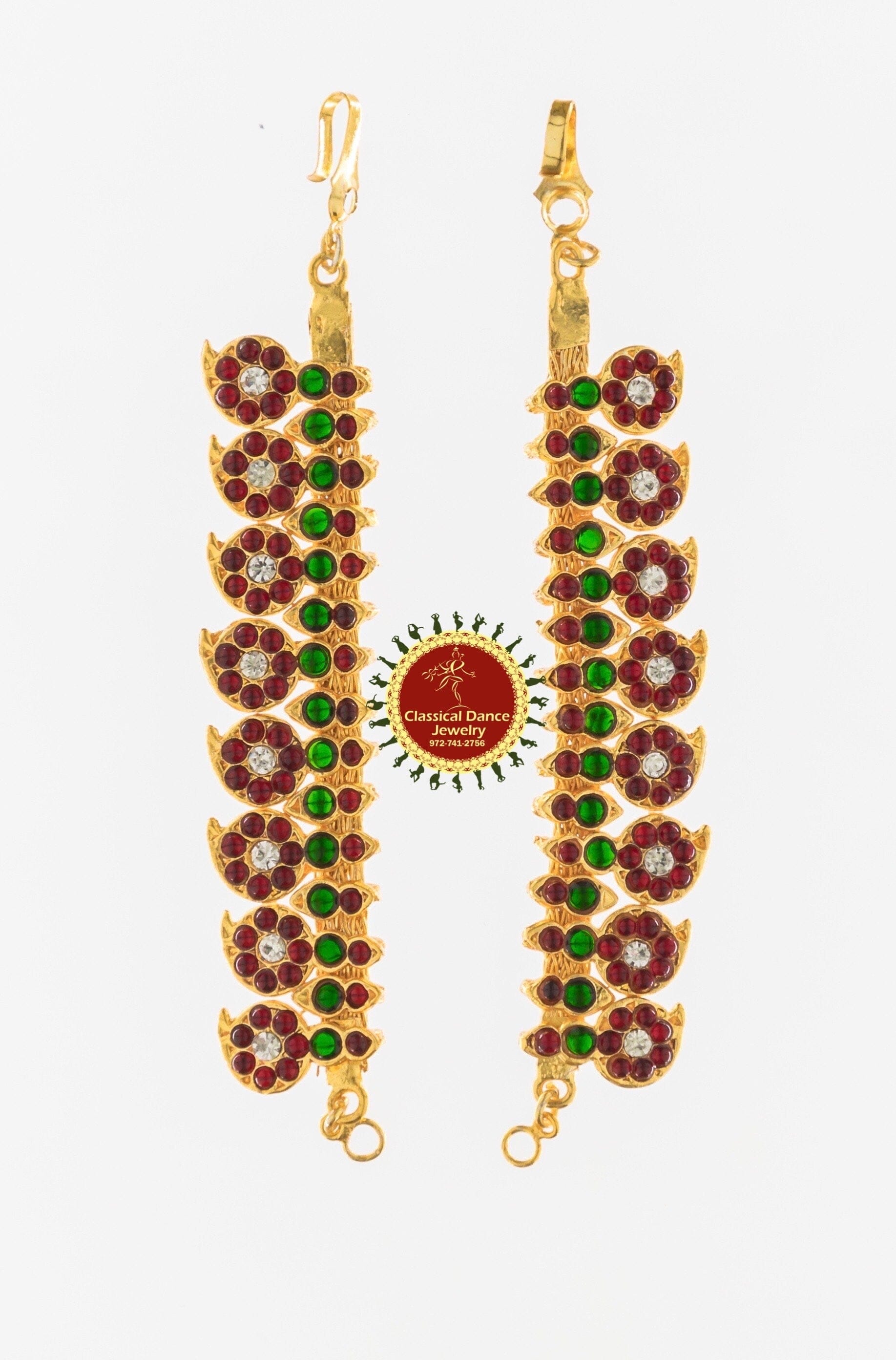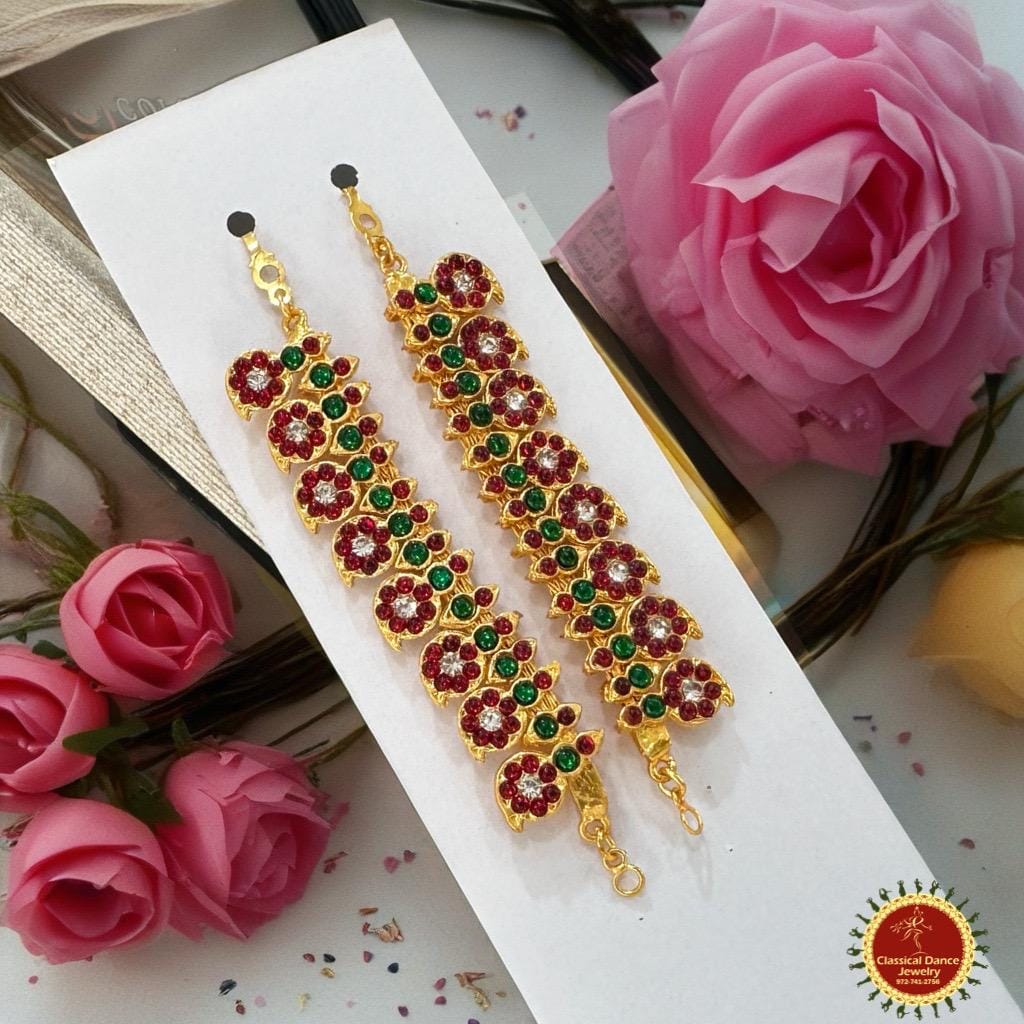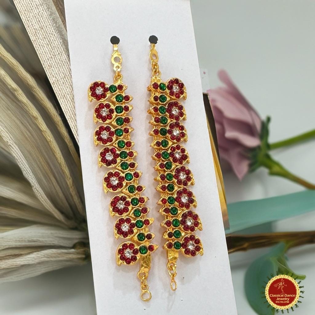 ❥ Colorful And Designer Mango Design Traditional Kemp Temple Indian Jewelry Ear chain | Matiz | Mattal
