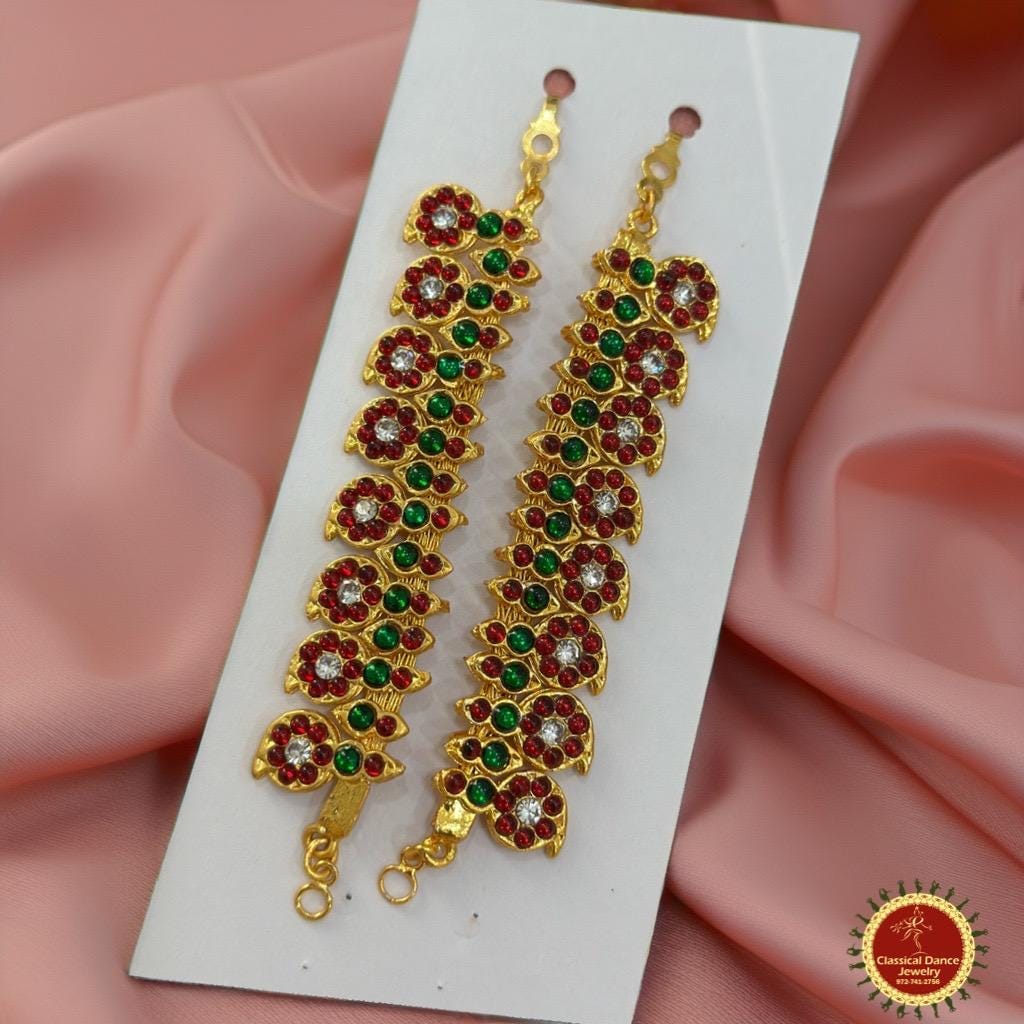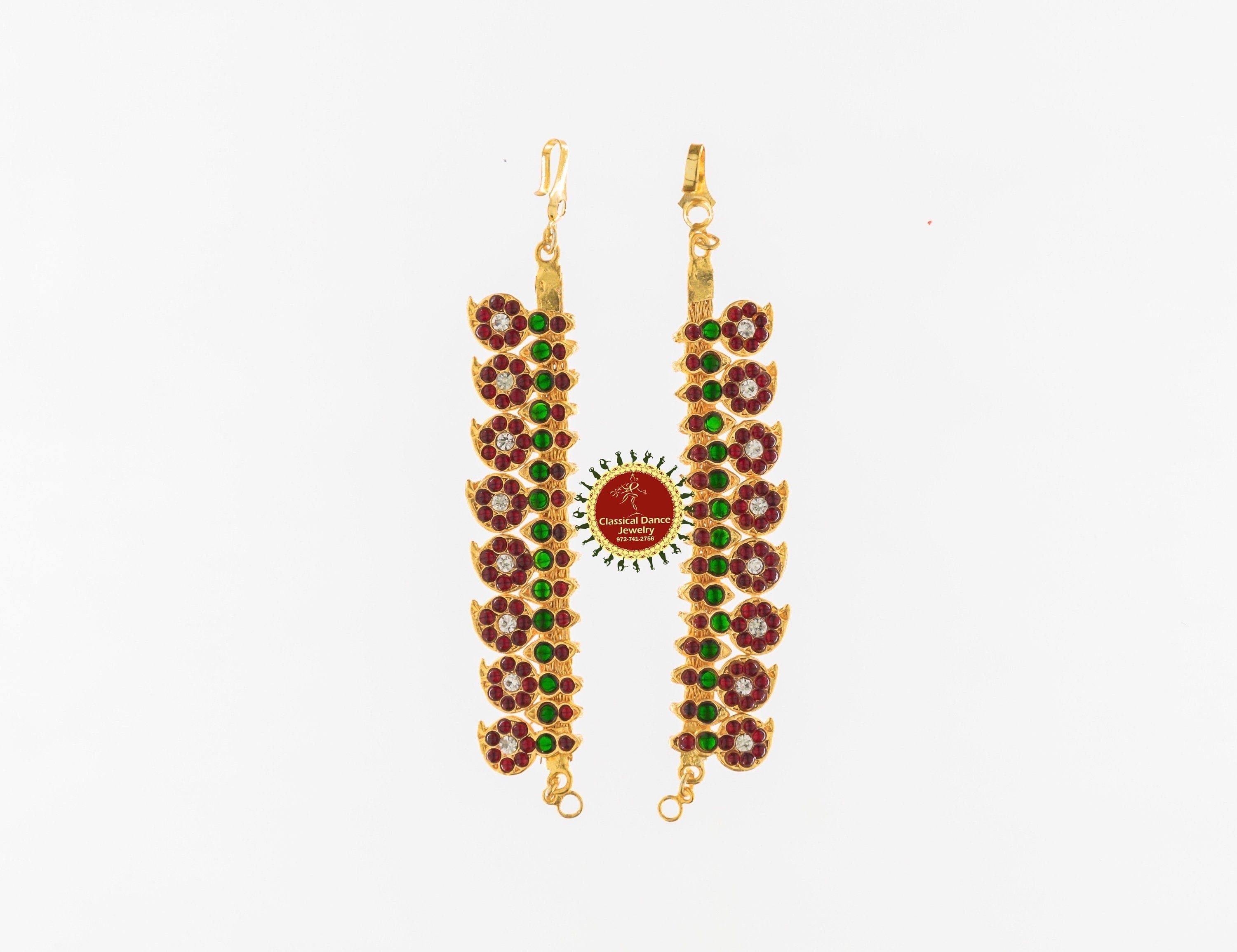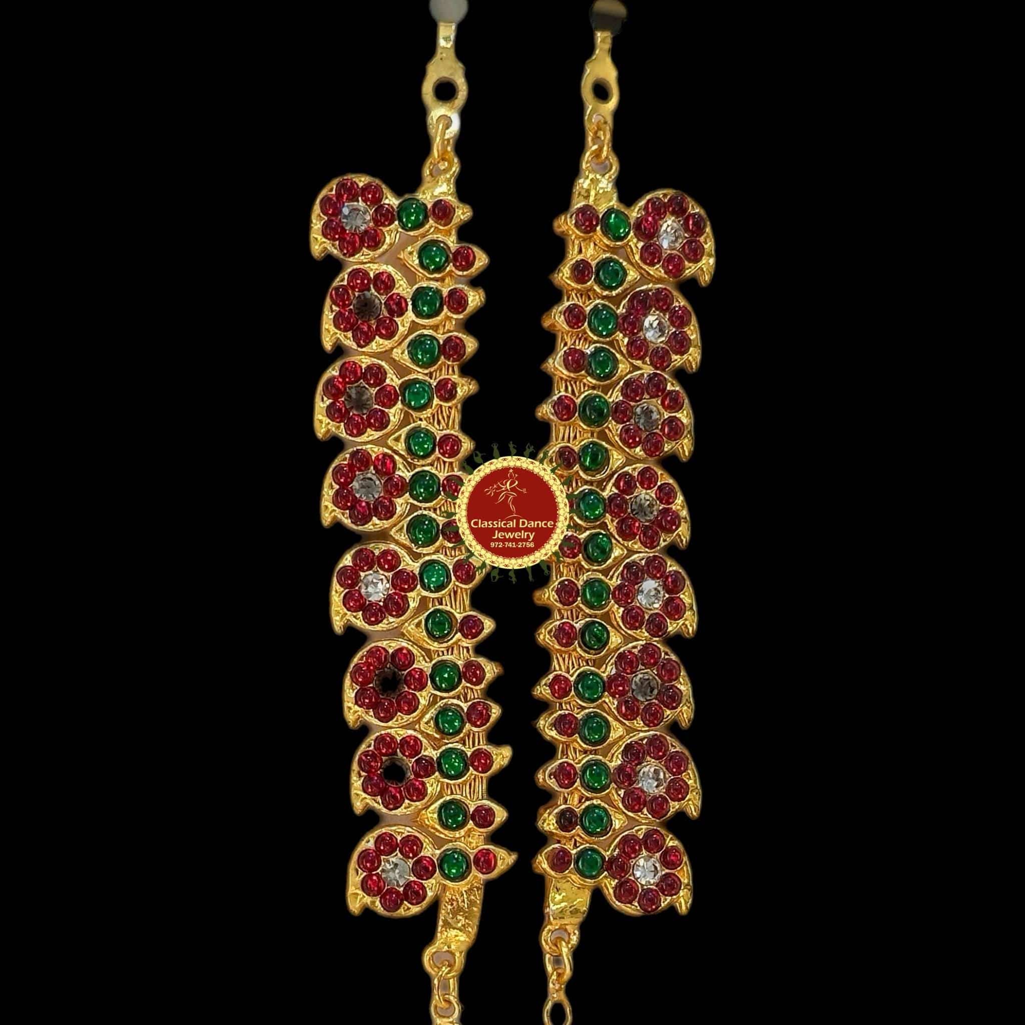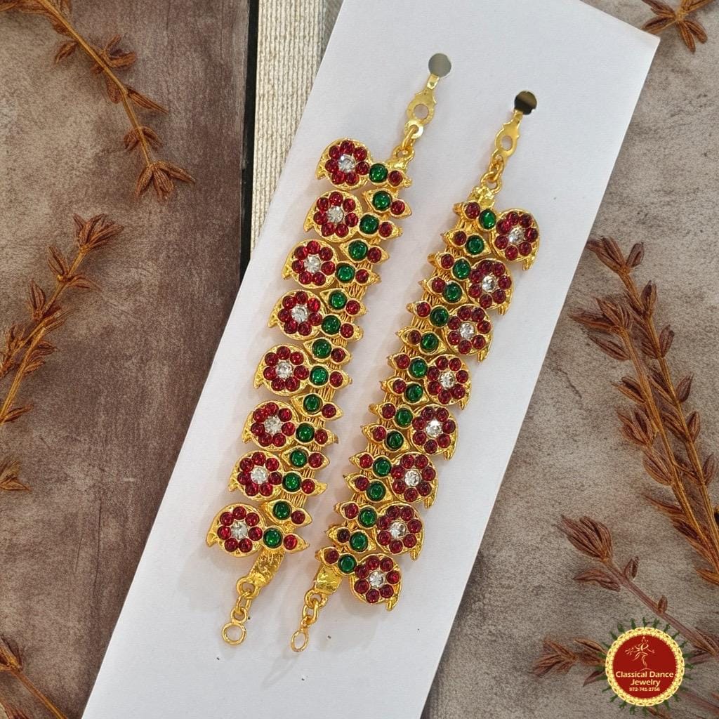 ❥ Colorful And Designer Mango Design Traditional Kemp Temple Indian Jewelry Ear chain | Matiz | Mattal