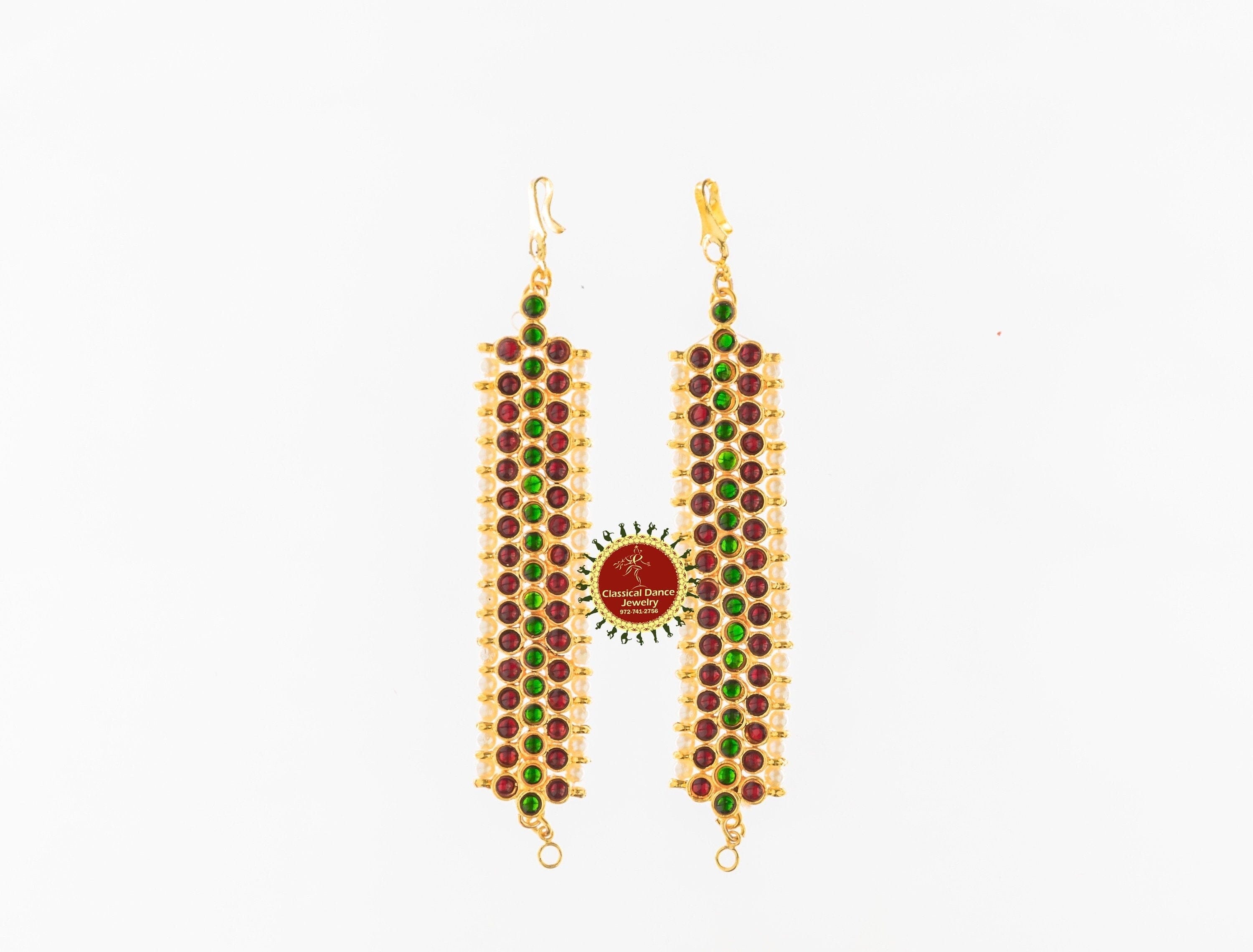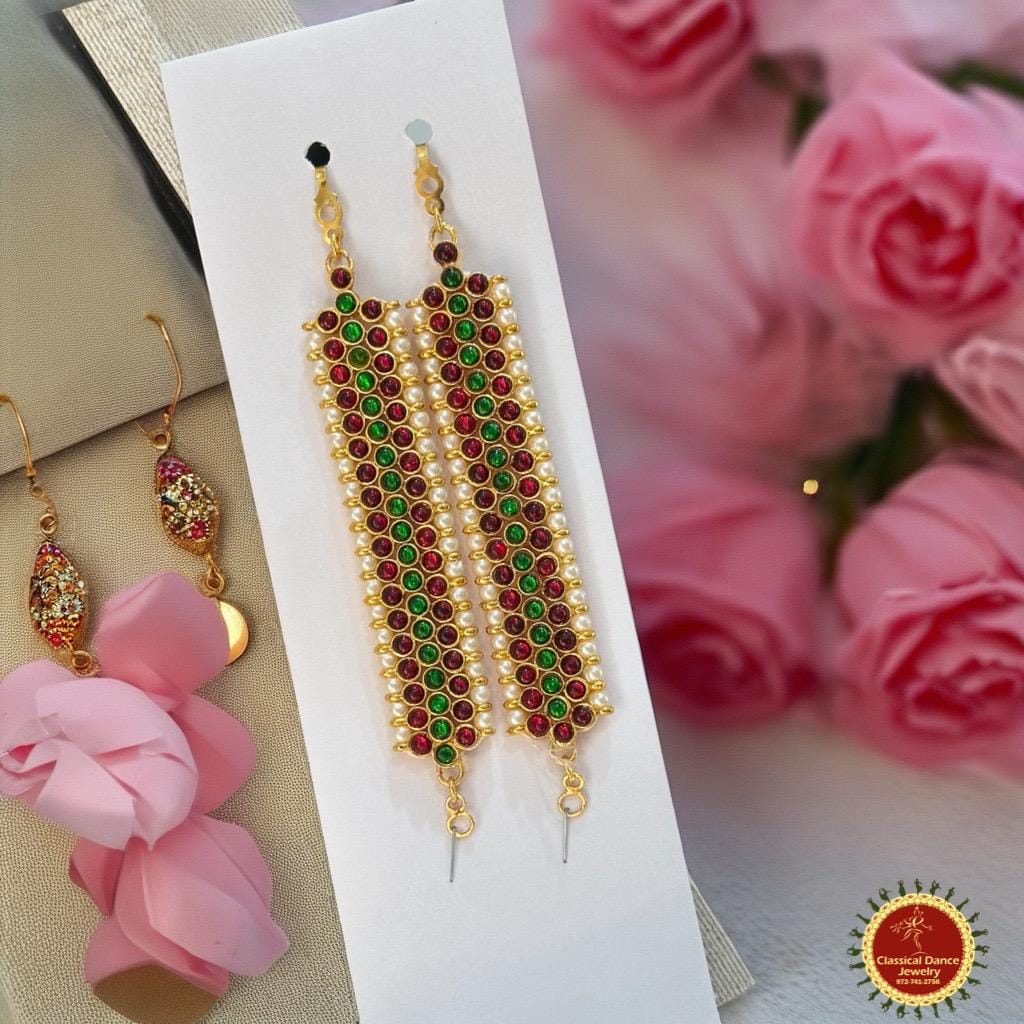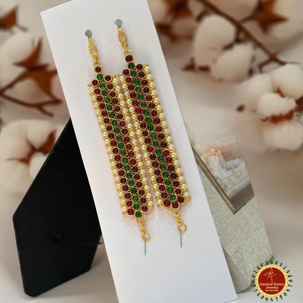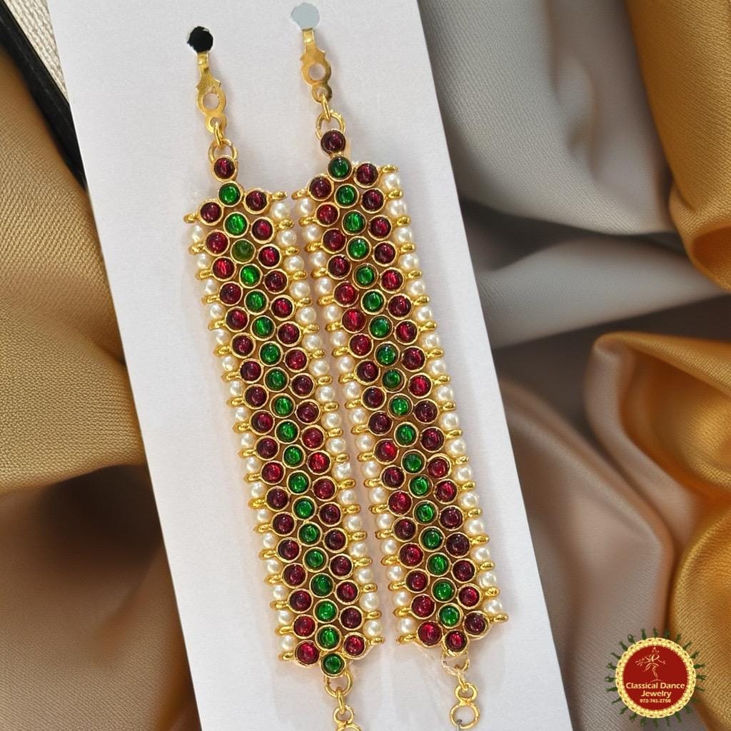 ❥ Colorful And Designer Middle Green Kemp temple Indian Jewelry Ear chain | Matiz | Mattal
