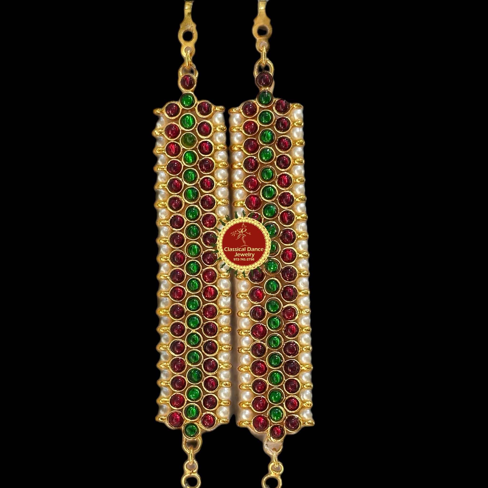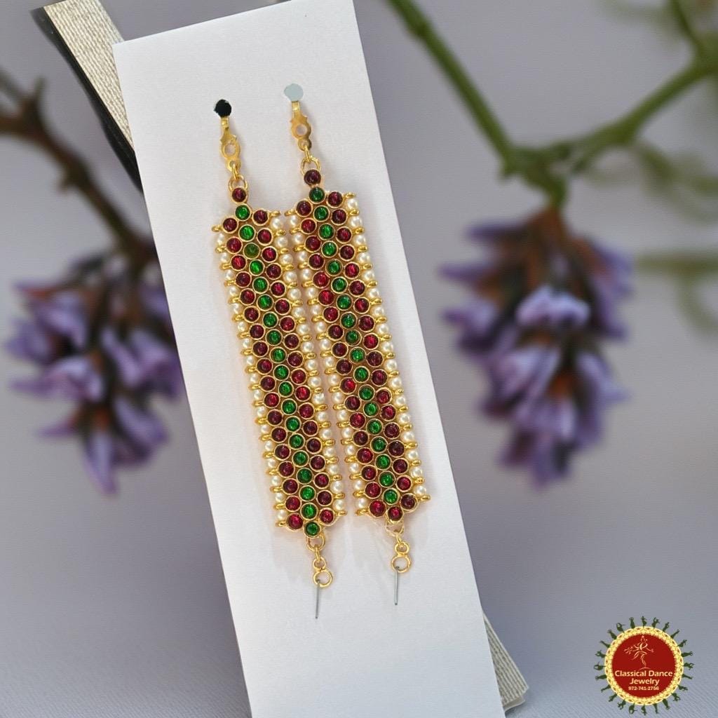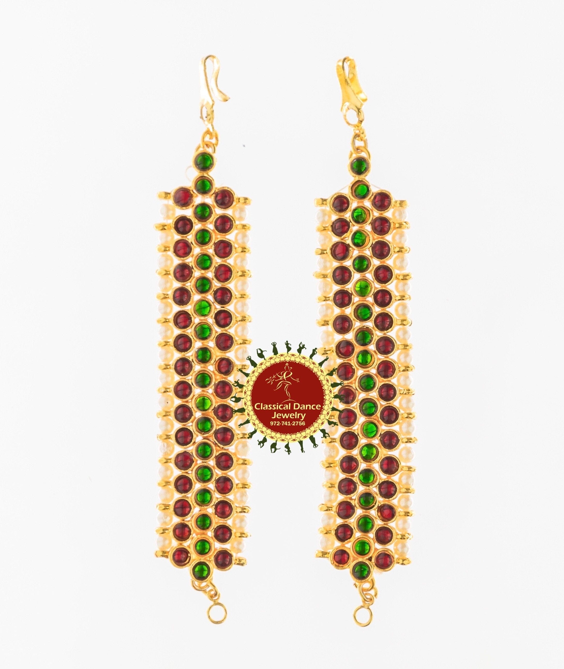 ❥ Colorful And Designer Middle Green Kemp temple Indian Jewelry Ear chain | Matiz | Mattal